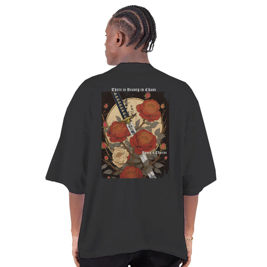 Black and Red Roses x Thorns Oversized Drop-Shoulder Crewneck T-Shirt | Shaka Wear SHGDD
